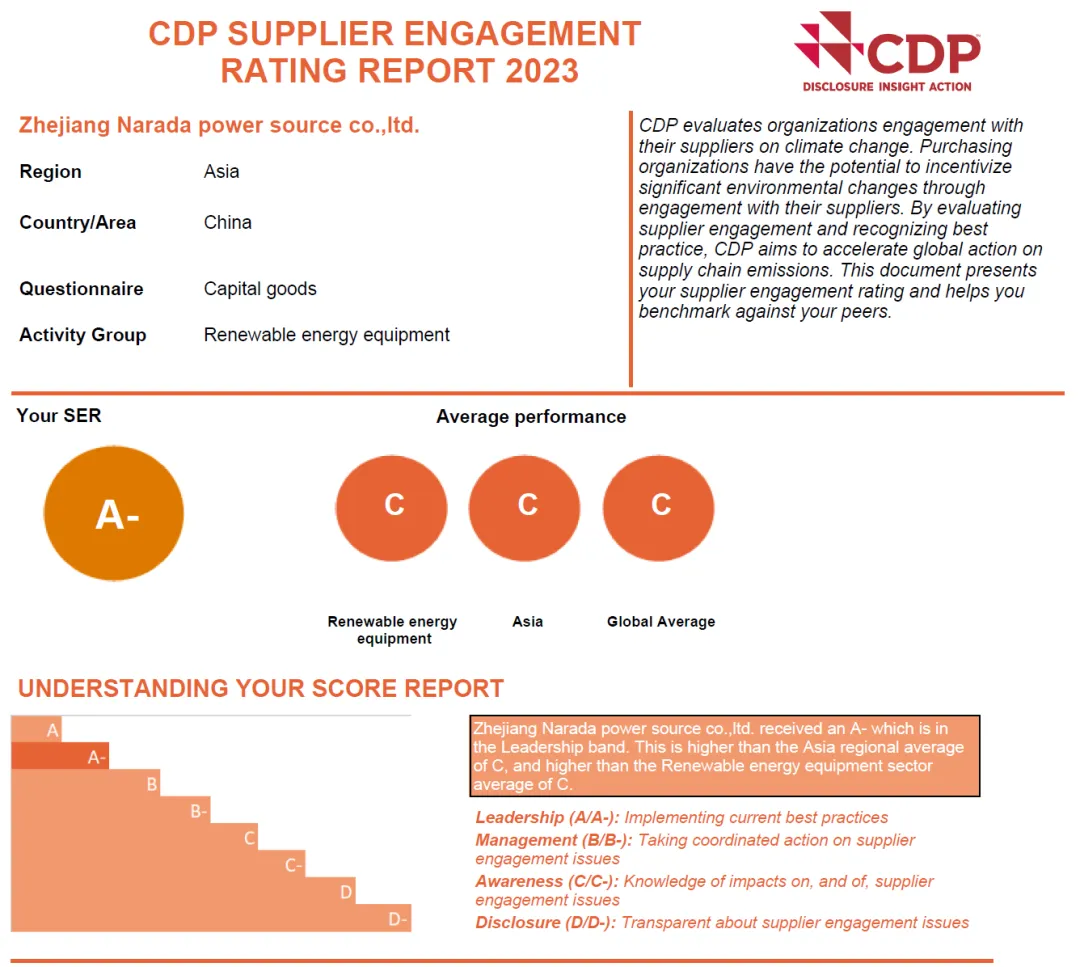 因在推动供应链降碳方面取得显著效果,公司上榜了CDP“2023供应商加入度A级名单”,显著高于全球、亚洲和行业平均水平“C级”,证实晰公司在推动整个价值链天气行动中,取得了优异效果。